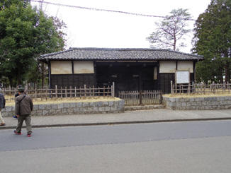 「黒門」門扉の両側に小部屋が付属する長屋門で、明治維新後に埼玉県庁の正門となり、後に知事公舎の正門となり、昭和45年現在の岩槻城址公園内に移築されました。