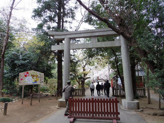 久伊豆神社の境内に多数のクジャクがタイミングよく羽根を広げていた。